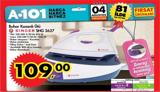 A101 4 Ağustos Perşembe tarihli yeni hafta indirimli aktüel ürün kataloğunda şaşırtan indirim fırsatları sizleri bekliyor. A101 market Ağustos ayının son indirim kataloğunda birbirinden güzel ve cazip ürün fırsatlarını satışa sunmaya devam ediyor. İndirim denince ilk akla gelen marketler zinciri olan A101 mağazalarında yine bir çok bilindik markanın kaliteli ürünleri %50 lere varan indirimlerle A101 reyonlarında yerini alıyor. A101 4 Ağustos tarihli ve her hafta Perşembe günlerine özel olarak hazırlanan aktüel ürün kataloğunda satışa çıkacak kampanyalı fırsat ürünleri vatandaşlara çok daha önceden dağıtılan broşürlerle hangi üründe ne kadar indirim yapılacağı bilgisi yer alıyor.