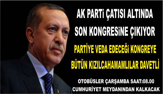 Başbakanımız ve Genel Başkanımız sayın Recep Tayyip Erdoğan’ın partimiz çatısı altında yapacağı son kongresi olan Genel Merkez Olağanüstü Kongremiz Çarşamba günü Anakara Arena Spor salonunda gerçekleştirilecektir.