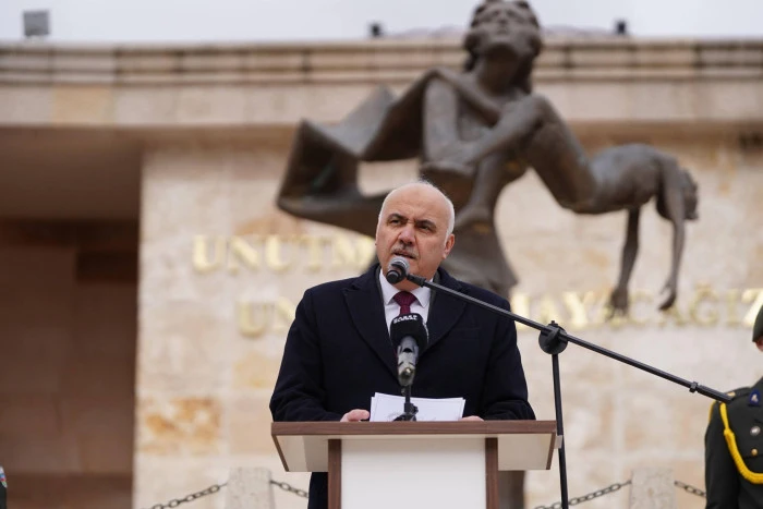 “Bugün burada, insanlık tarihine kara bir leke olarak geçen Hocalı Katliamı’nın 34. yıl dönümünde, yüreğimizde hâlâ taze olan bir acıyı paylaşmak için bir aradayız. 26 Şubat 1992 gecesi Hocalı’da yalnızca insanlar değil; masumiyet, merhamet ve insanlık da katledildi.