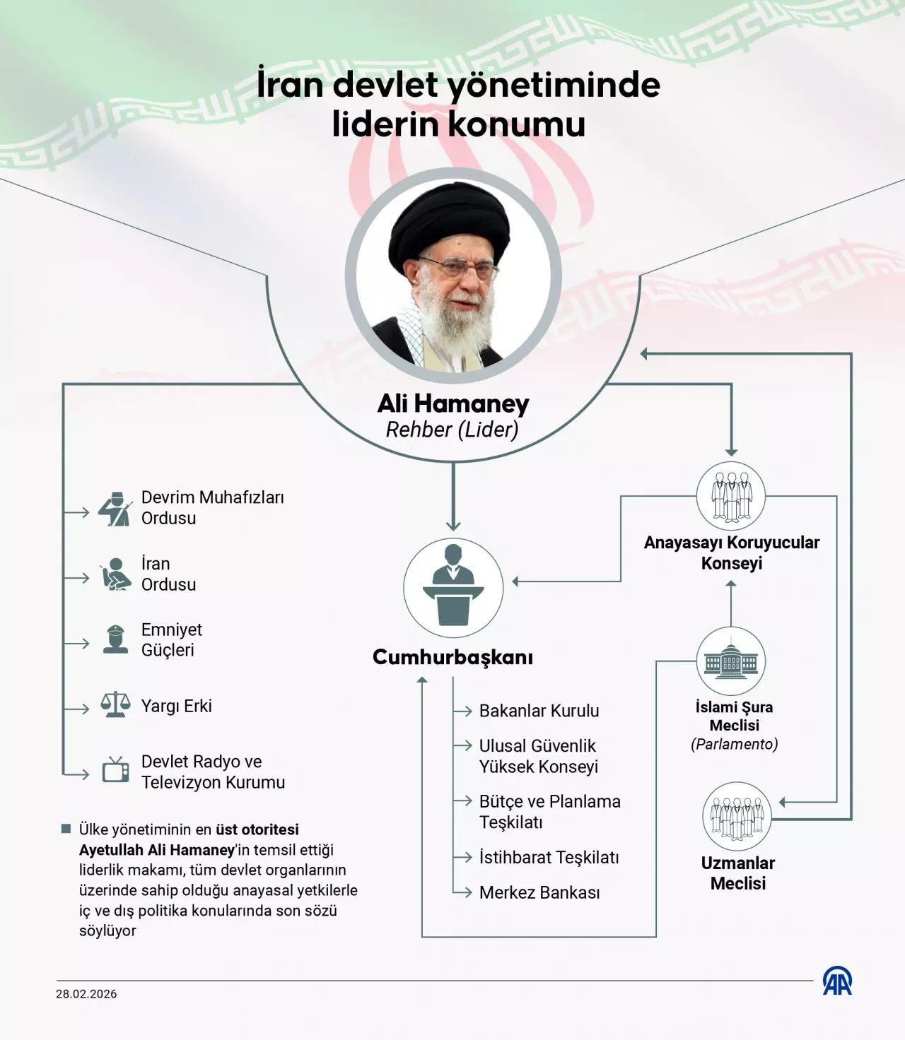 Hamaney'in "ABD istihbaratından" ve "gelişmiş takip sistemlerinden" kaçamadığını kaydeden Trump, "İsrail ile yakın işbirliği içinde çalışarak, kendisi veya onunla birlikte öldürülen diğer liderlerin yapabileceği hiçbir şey yoktu." değerlendirmesini yaptı.