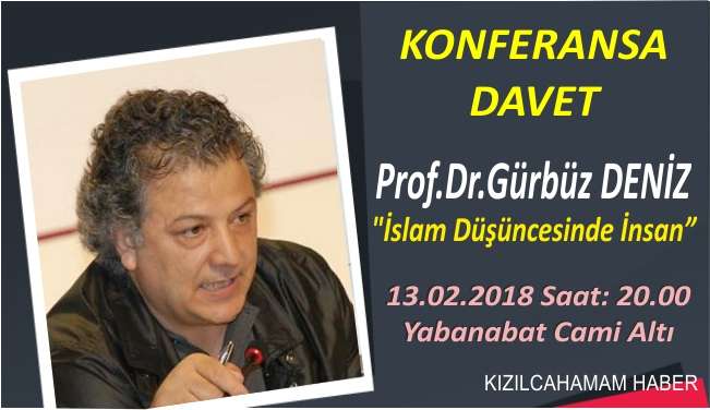 İlim Yayma Cemiyeti Kızılcahamam şubesi konferansalrına devam ediyor. Ankara Üniversitesi İlahiyat Fakültesi İslam Felsefesi Öğretim Üyesi Prof.Dr. Gürbüz Deniz'in vereceği "İslam Düşüncesinde İnsan" konulu konferans 13.02.2018 Salı günü Saat:20.00 de İlim Yayma Cemiyeti Yabanabat Camii Altı Kemal Güran Kültür Merkeziden yapılacaktır.