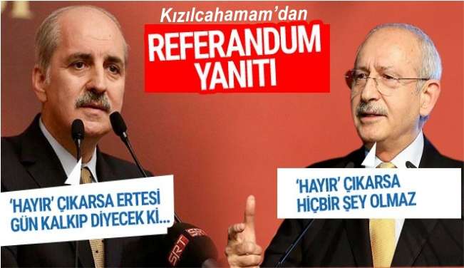 Başbakan Yardımcısı Numan Kurtulmuş, referandumda "hayır" çıkması halinde Kılıçdaroğlu'nun bu kez de "cumhurbaşkanı orada oturmasın, o başbakan orada oturmasın." diyeceğini iddia etti.