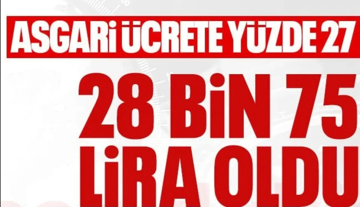 Çalışma ve Sosyal Güvenlik Bakanı Vedat Işıkhan, 1 Ocak 2026 tarihinden itibaren geçerli olacak asgari ücretin yüzde 27 zam yapılarak net 28 bin 75 TL olarak belirlendiğini duyurdu.