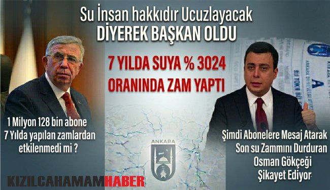 Meclis’te düzenlediği basın toplantısında konuşan Gökçek, Mansur Yavaş’ın göreve gelmeden önce su fiyatlarını düşürme vaadinde bulunduğunu hatırlatarak, görev süresi boyunca su faturalarında ciddi artışlar yaşandığını öne sürdü.