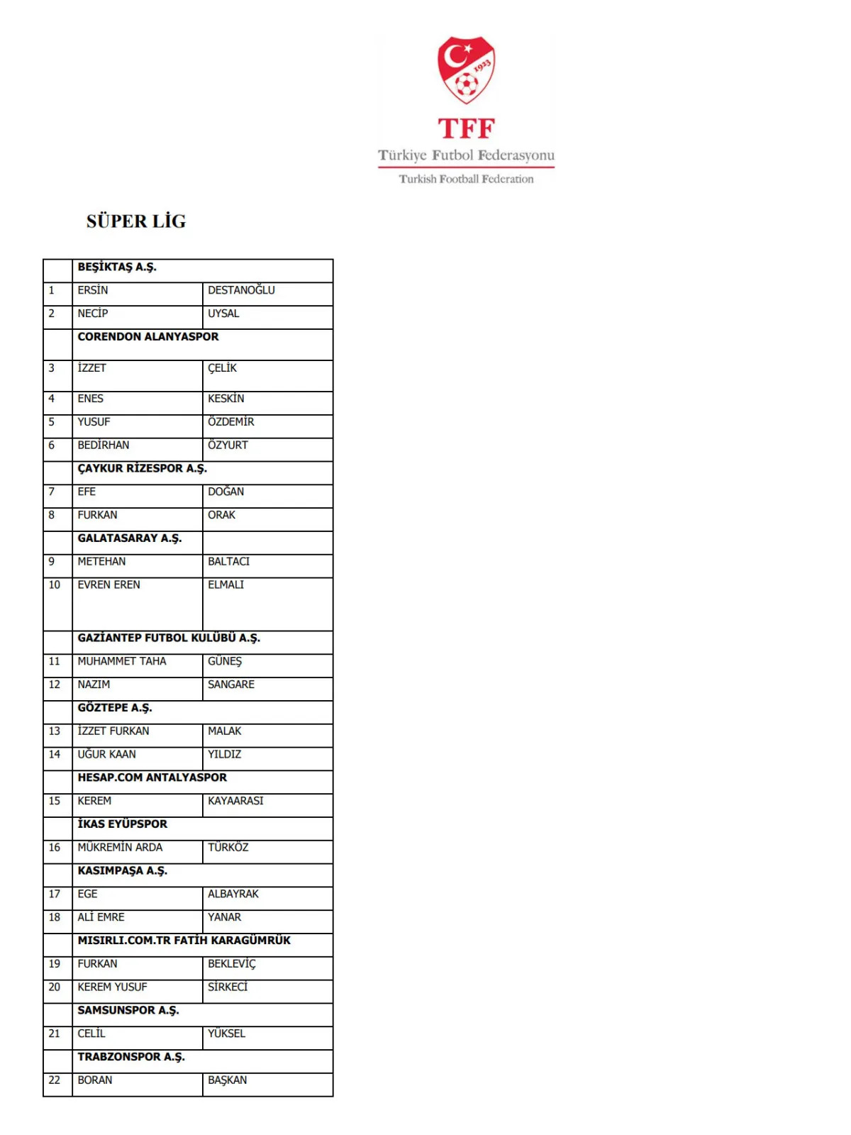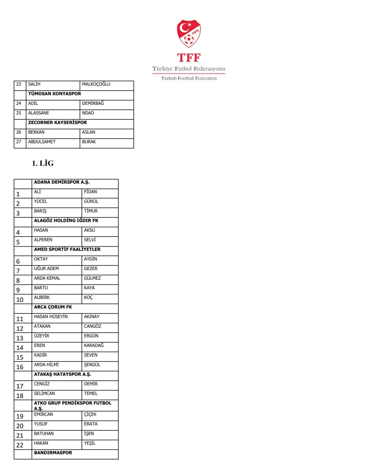 Futbol Disiplin Talimatı'nın 57. maddesi uyarınca PFDK'ya sevk edilen 1024 futbolcu aşağıda yer almaktadır.