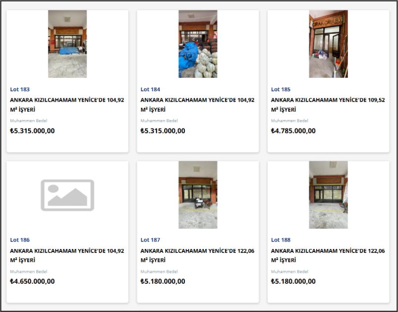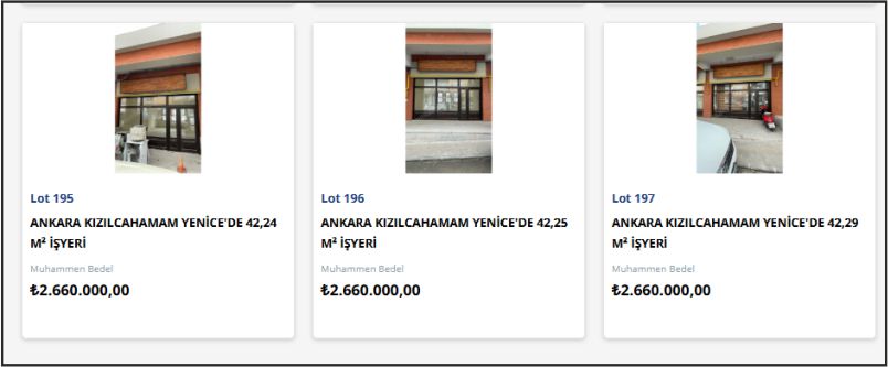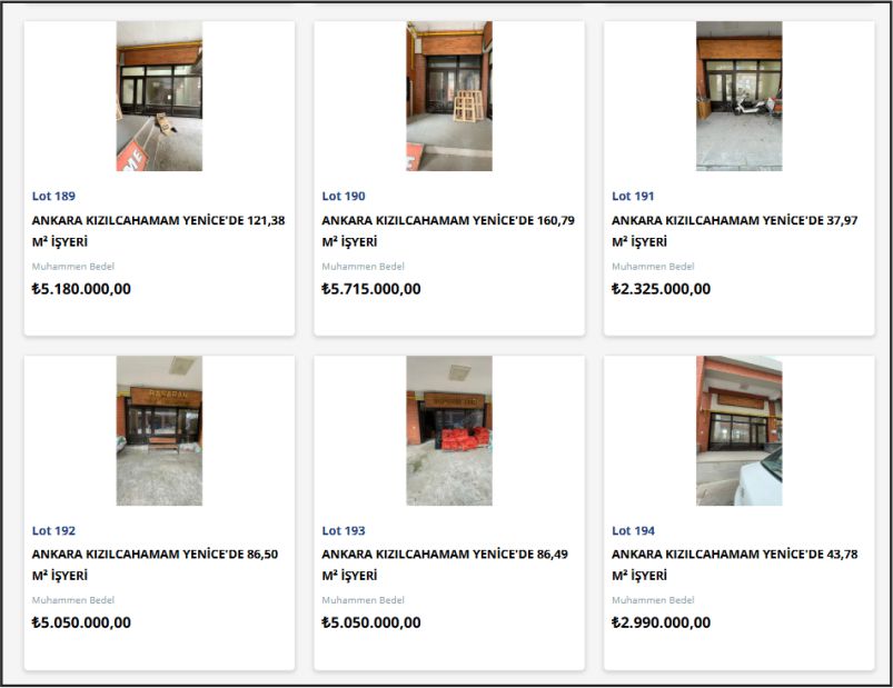 Kızılcahamam Halde bulunan TOKİ'ye ait dükkanlar 5 Aralık 2025 Cuma günü ihale ile satışa çıkıyor