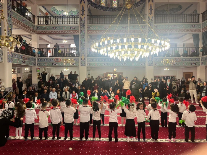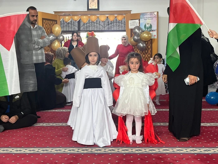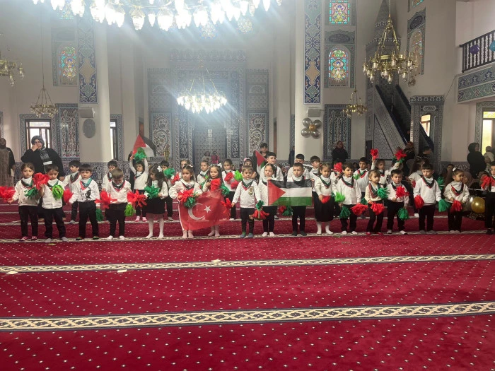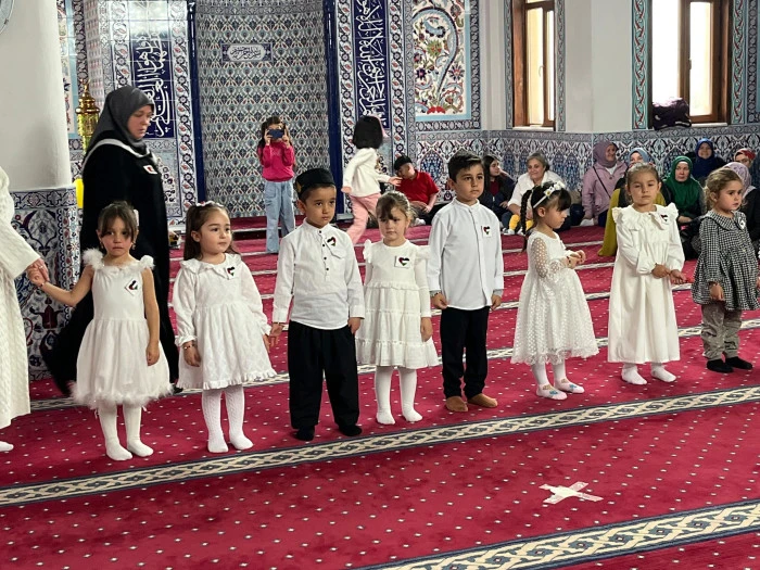 Kızılcahamam İlçe Müftülüğü tarafından Yabanabad Camii’nde düzenlenen 4-6 Yaş Kur’an Kursları Camii Çocuk Buluşması programı, minik öğrencilerin Kur’an tilavetleri, ilahileri ve Filistin temalı gösterileriyle büyük beğeni topladı.